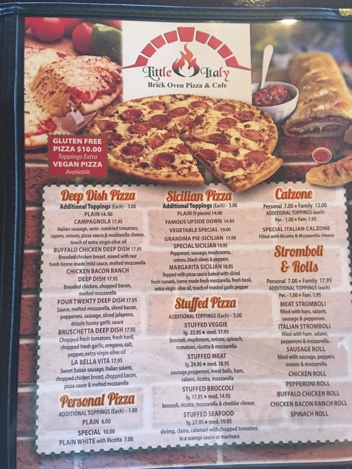 Little Italy Brick Oven Pizza Cafe Menu In Washington New Jersey Usa